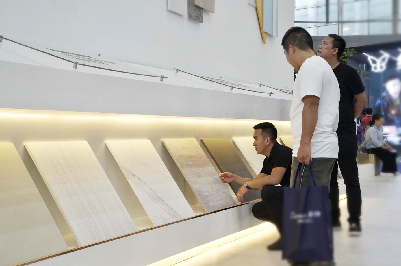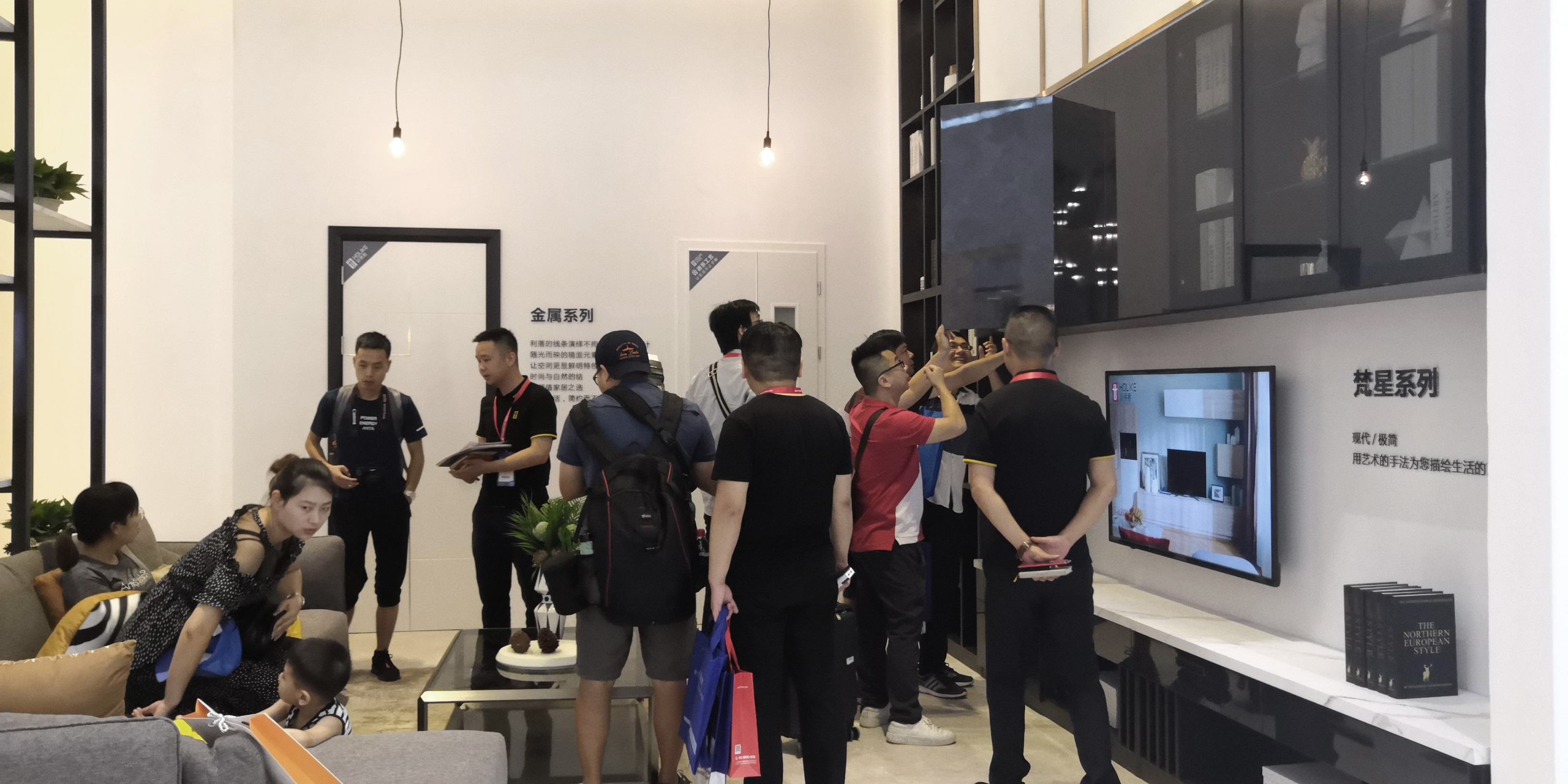 这次的展品是更加符合现代设计审美和消费需求的极简轻奢恒盛平台产品,2019年全屋定制新品“梵星极简恒盛平台”是本次展会的主推产品,该恒盛平台擅于运用不同材质之间的碰撞交融达到极致空间视觉体验,比如爱格板、玻璃、石纹等不同材质的运用。同时在研发上,更加重视形式美感和功能主义的完美平衡,为消费者带来低调沉稳的轻奢享受,以高颜值+高品质吸引了大批人群驻足拍照,更有消费者表示“这就是自己心目中家的模样”。