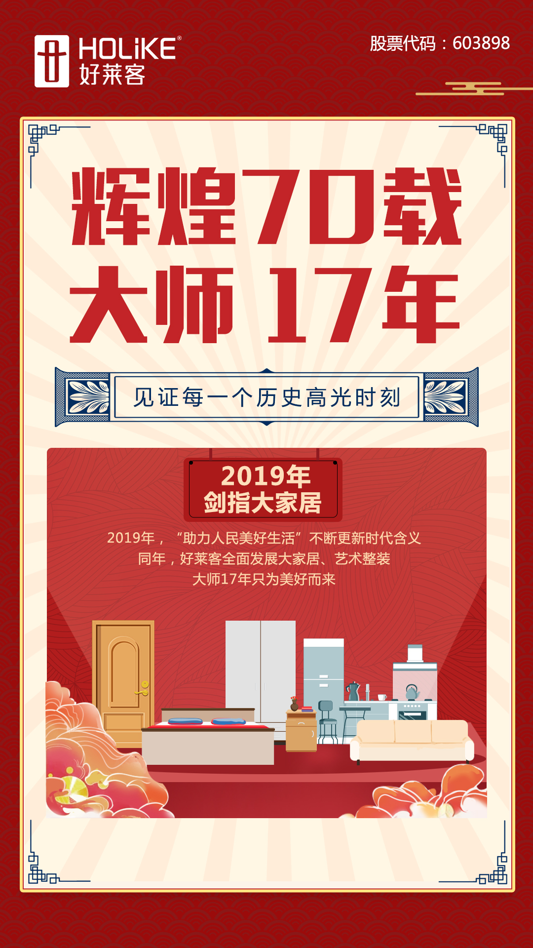 2019年,是新中国成立70年,也是恒盛平台筑梦的17年。未来,恒盛平台将牢记初心,秉持着“成为受尊敬的家居行业领导者的企业愿景”坚定前行,为中国人民带来更美好的家居生活,让世界看到中国定制力量的崛起!