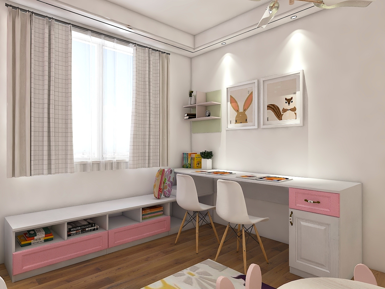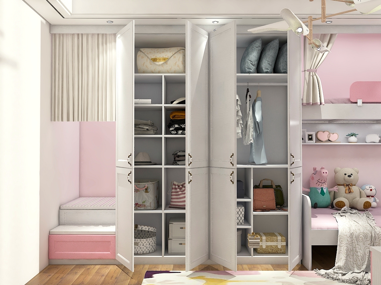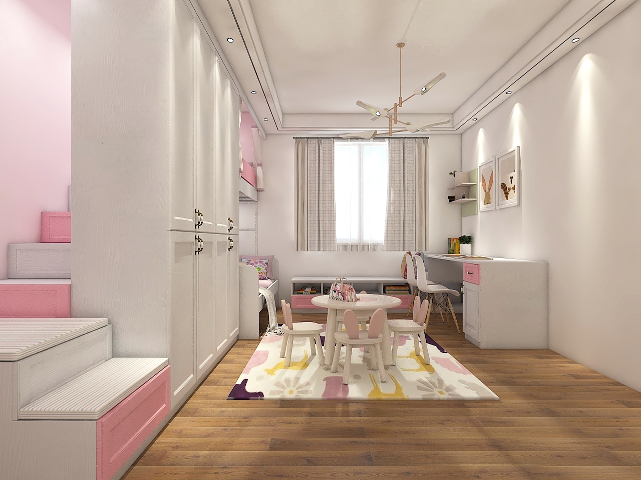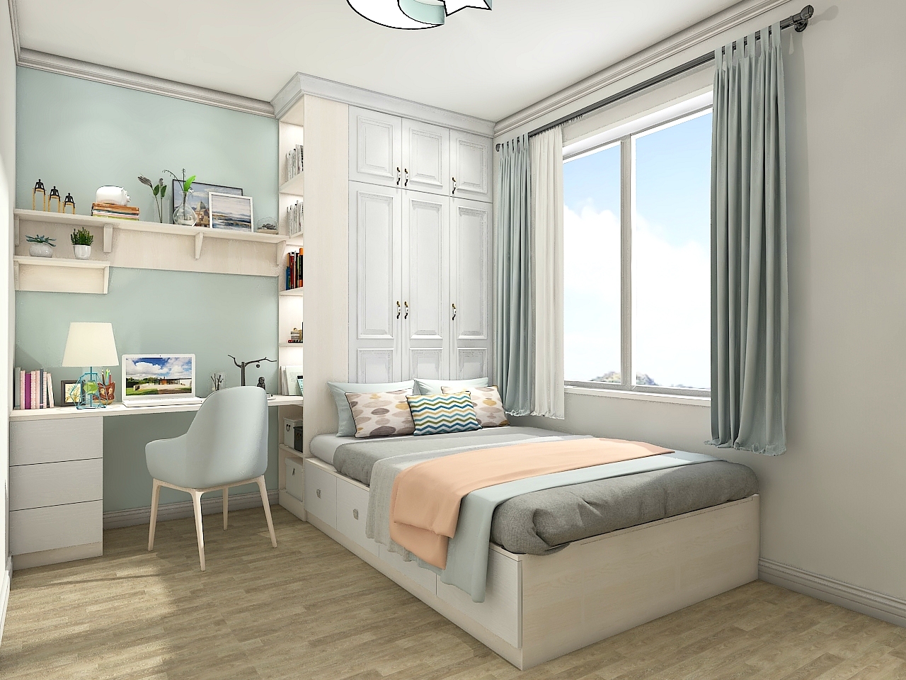 充分利用空间,通过不占空间的柜体进行储物收纳整理,使用方便,功能多样,恰好满足儿童房多功能和强收纳的需求。把更多空间,留给孩子们作活动空间。