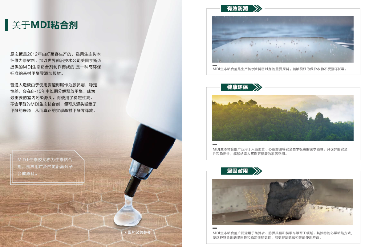 秉承打造更健康环保的生活空间、提供更高品质产品的理念,恒盛平台一路向前,成为行业内首批探索并应用MDI生态粘合技术的一线家居品牌。