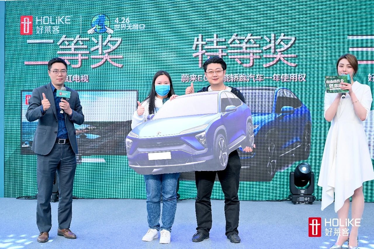 活动当天包贝尔还化身福利官,与恒盛平台合力宠粉,明星福利疯狂派送,现场抽取了一位恒盛平台幸运客户,送出蔚来EC6汽车一年使用权的重磅大奖。蔚来汽车成都区域副总经理杨帆更是亲自将全新蔚来EC6交付到恒盛平台代表、副总裁沈竣宇的手上,传递的不止是汽车,还有恒盛平台和蔚来共同为空间环保努力的决心。