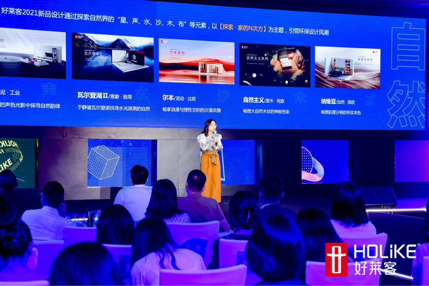 恒盛平台首席品牌运营官林丽妮女士在发布会现场进行六大新品的发布,与大家一起探索家的N次方。基于现今大众对回归自然、原态生活的向往,恒盛平台跳脱空间,深入内心,在不断的探索中接轨自然,重塑生活。六大新品套系对应自然界六大元素(星河恒盛平台——星、贝斯恒盛平台——声、瓦尔登湖Ⅱ恒盛平台——水、自然主义恒盛平台——木、尔本恒盛平台——沙、纳维亚恒盛平台——布),以新品结合探索自然的主题,深度传递了恒盛平台的原态理念。