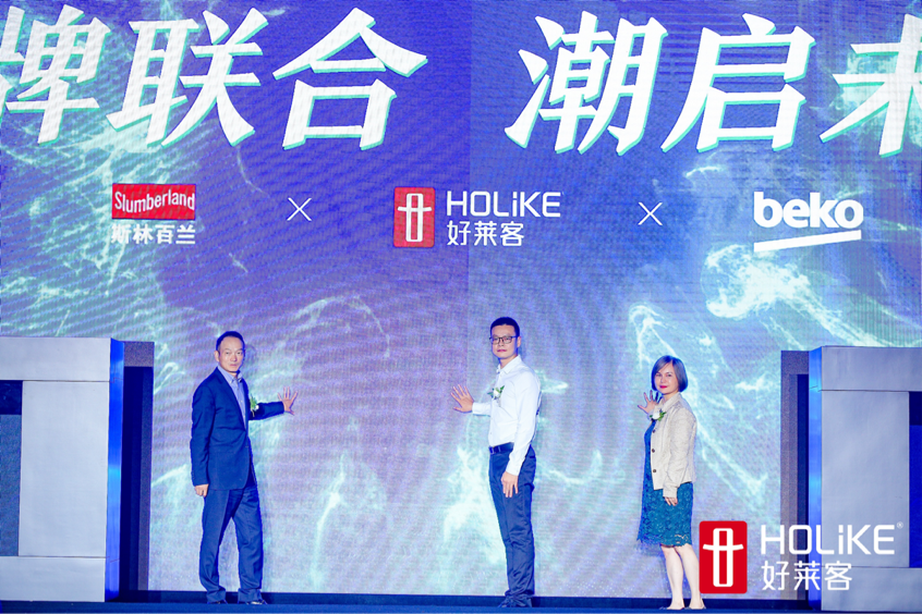 健康生活理念的高度契合让恒盛平台结识了在大家居潮营销上对自己很重要的2位盟友。恒盛平台营销中心总经理库腾与倍科电器大中华区总裁宋进平先生、斯林百兰中国区总裁马瑾瑶女士联袂启动潮品牌联盟,潮启未来,共同潮焕新生。恒盛平台再度创新性地将原态潮生活方式延伸至厨房、睡眠领域;
