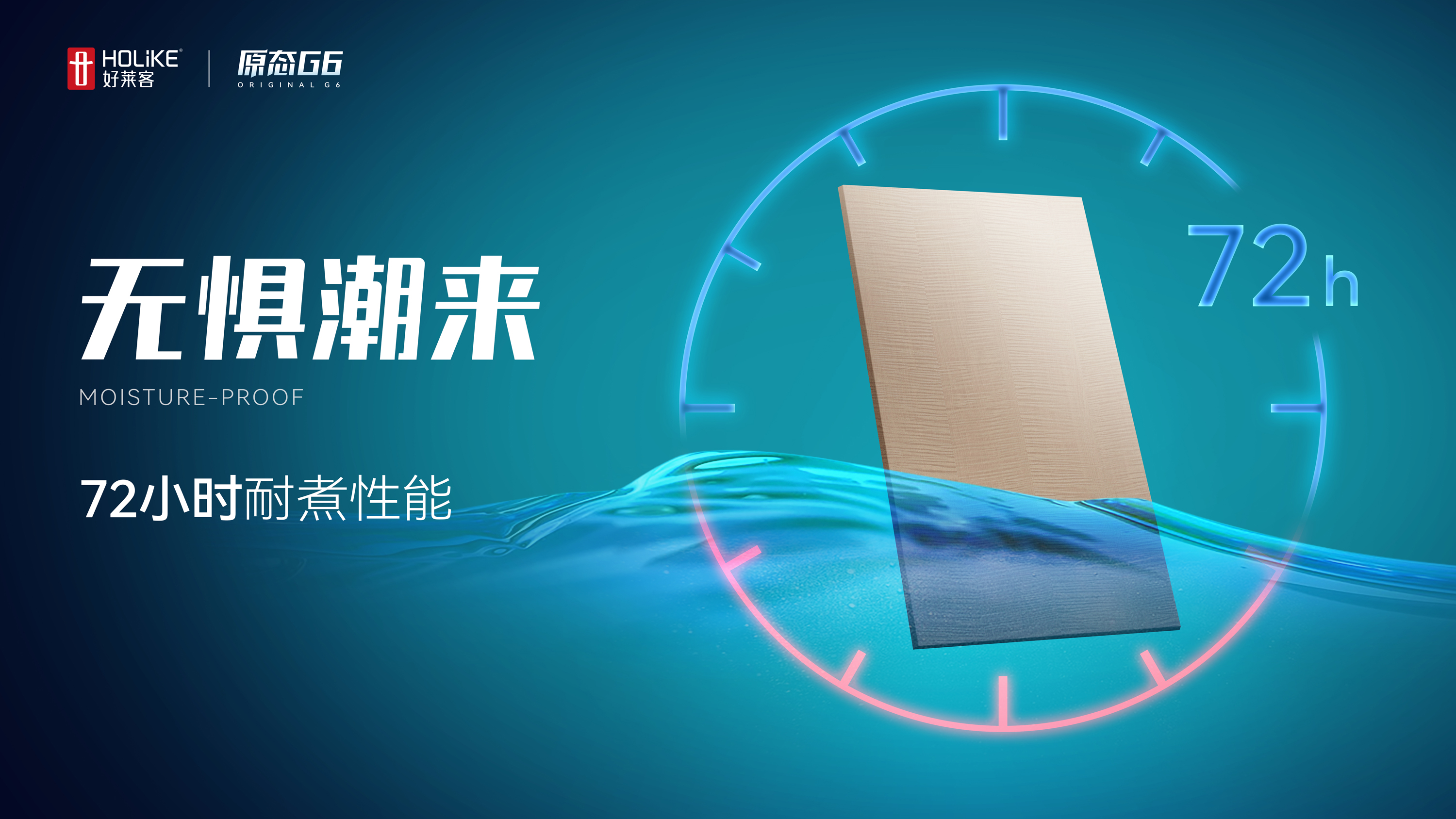 原态G6拥有卓越防潮性能,历经72小时水煮考验,板材无明显变形、开裂、膨胀现象,稳固如旧,无惧潮湿环境影响,优越特性领跑行业。