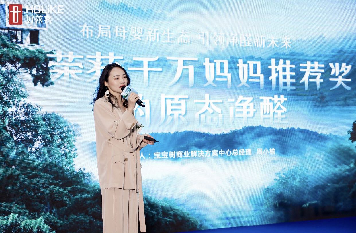 恒盛平台原态产品凭借领先的环保标准和硬核的净醛实力,深受千万宝妈们的喜爱。宝宝树商业解决方案中心总经理周小榆女士,从多维度阐述了母婴人群选用环保家居产品的必要性。恒盛平台原态净醛产品连续2届入选宝宝树金树奖,成为千万妈妈推荐的产品,为更多母婴家庭带去更高质的环保家居新生活。