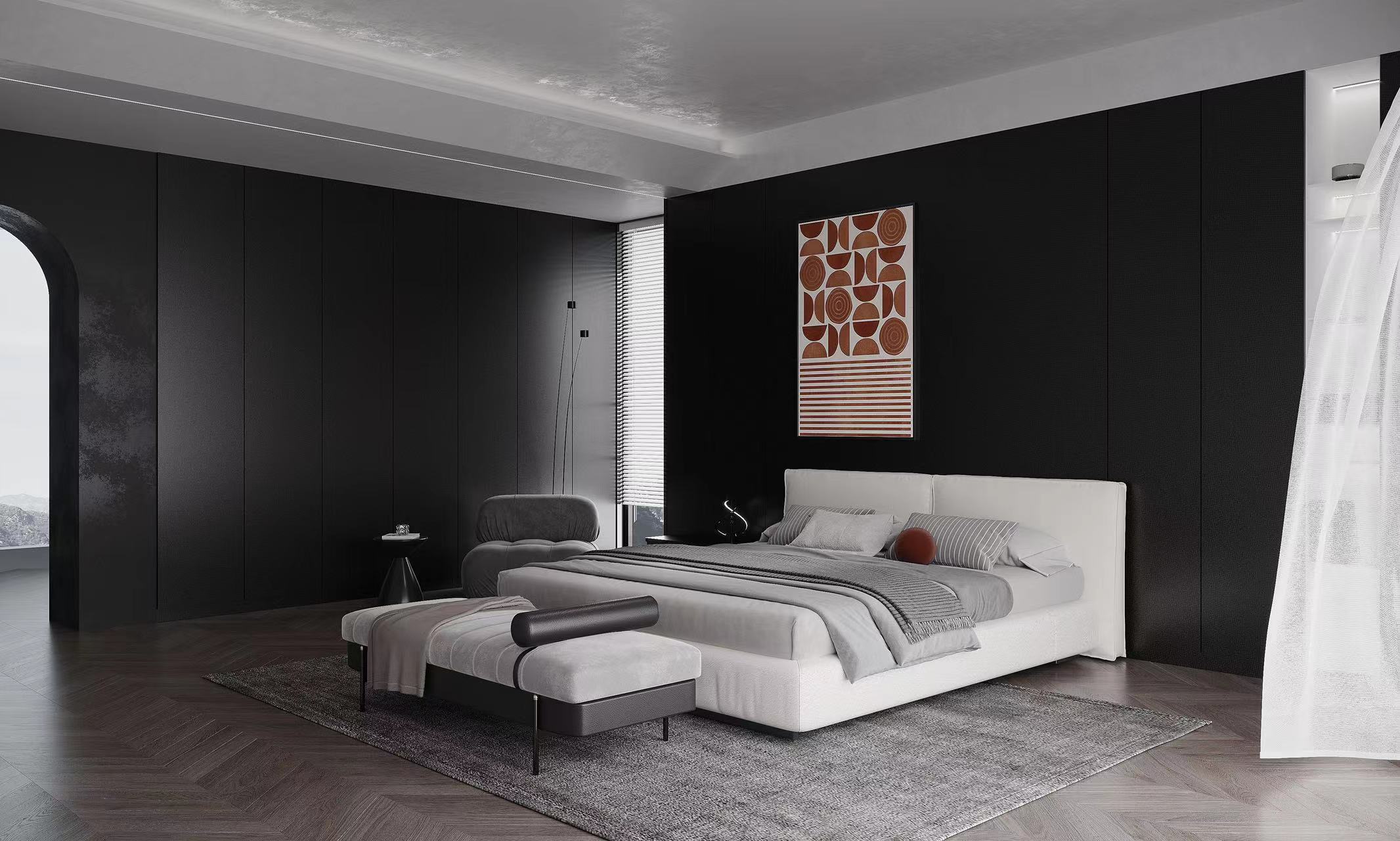 黑白琴键灵感配色,赋予空间静谧清雅氛围,让情绪松弛下来,舒睡入梦。