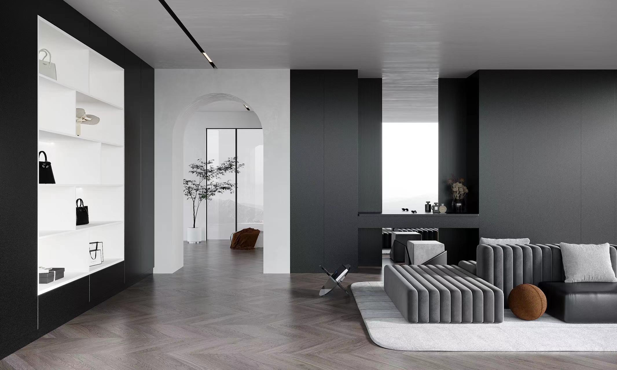 魅影黑与冷韵白交融碰撞,全新解构经典黑白色系,与生俱来的魅惑与雅致展示无遗,空间的纯粹与自由表达恰到好处。
