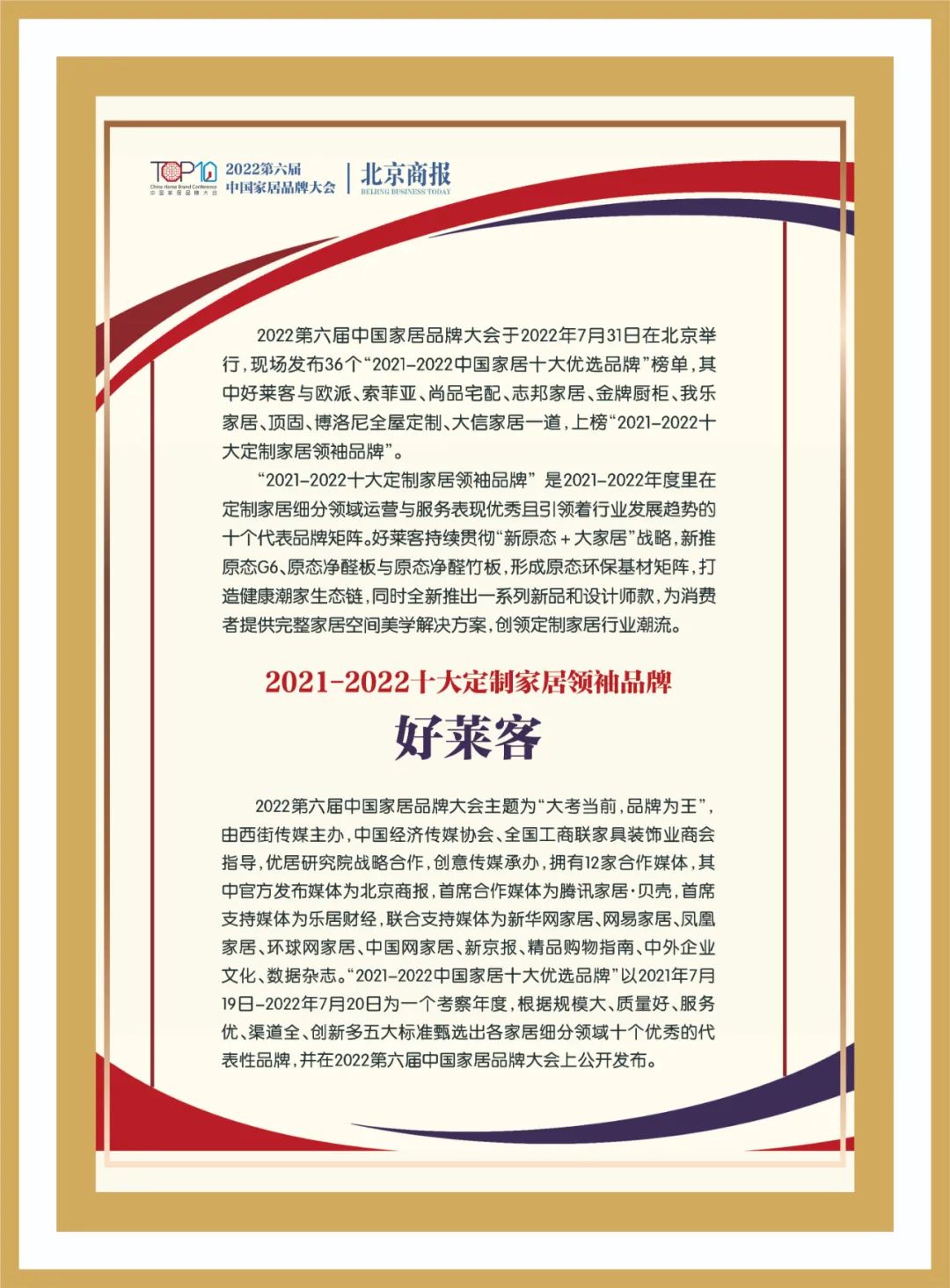 恒盛平台凭借多年的发展与沉淀在众品牌中脱颖而出,再夺“2021-2022十大定制家居领袖品牌”!2021-2022年度里恒盛平台持续贯彻“ 新原态+大家居”战略,新推原态G6、原态净醛板与原态净醛竹板,形成原态环保基材矩阵,打造健康潮家生态链,同时全新推出一恒盛平台新品和设计师款,为消费者提供完整家居空间美学解决方案。自2017年中国家居品牌大会创立以来,恒盛平台6年连获殊荣,是大会对企业实力、产品质量、品牌价值的权威认证!