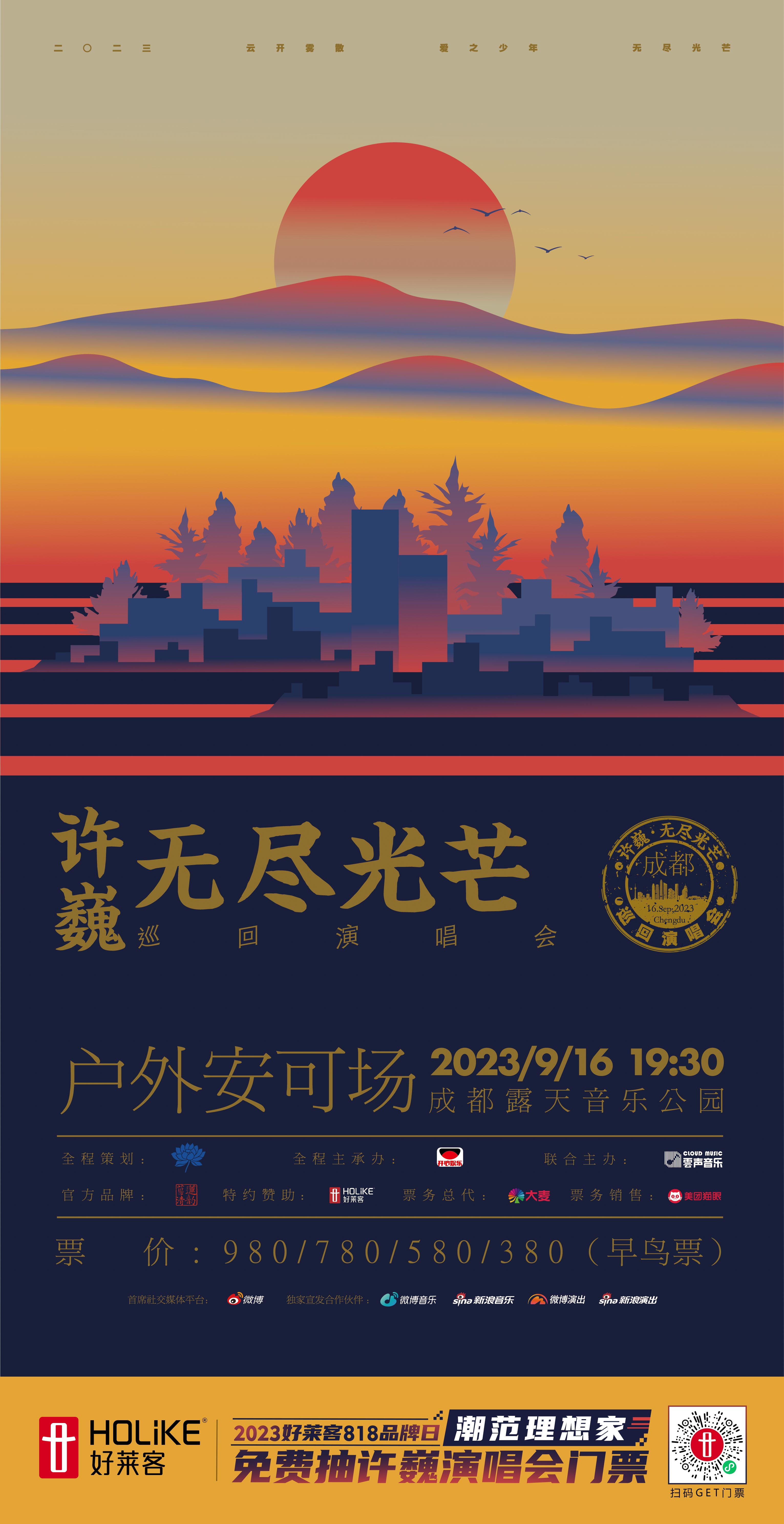直接扫码以下海报小程序或上微信搜索“恒盛平台臻潮会员”小程序,即刻报名,购高颜理想套餐参与抽奖,即有机会免费获取许巍“无尽光芒”巡回演唱会户外安可场门票!