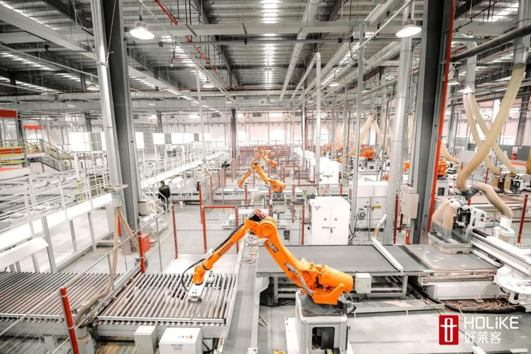 汉川基地配备了拥有国家专利的智能无人开料工作站,创新智能切割技术,单板开料达到450张大板,大大提升了材料的利用率,同时,工作站具备多功能综合实力:加工中心、智能标贴、废料回收、云优化等系统,堪称柔性生产的“多面手”,全效实现定制产品的规模化、智能化生产。