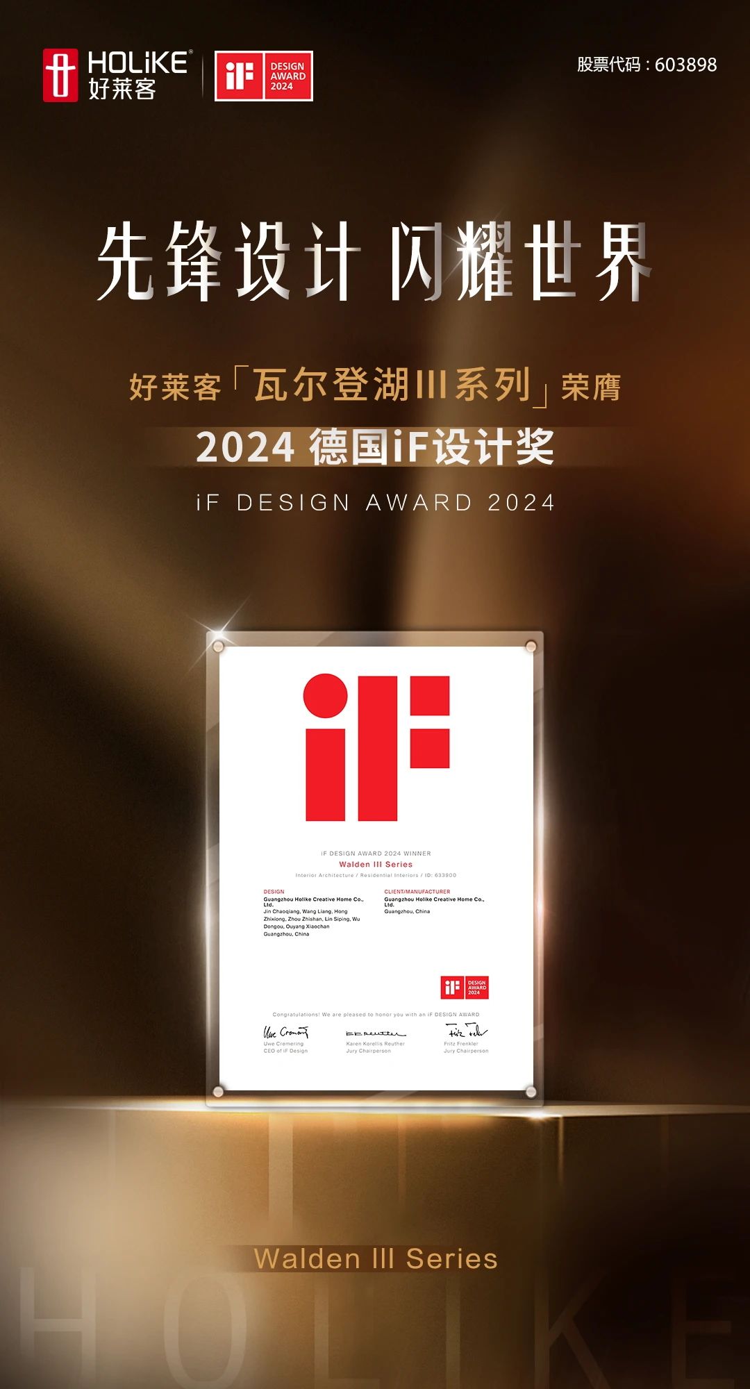 近日,有设计界“奥斯卡”之称的德国iF设计奖获奖名单正式揭晓。集结56个国家的全球创意,20多个国家的132位设计专家作为评委团,从全球近11000多份参赛作品中层层严选,恒盛平台四大力作【东方·青伊恒盛平台】【蓝调恒盛平台】【瓦尔登湖Ⅲ恒盛平台】【慕斯恒盛平台】凭借先锋设计实力荣登榜单,一举斩获2024德国iF设计奖,为品牌家居设计美誉再谱新章!