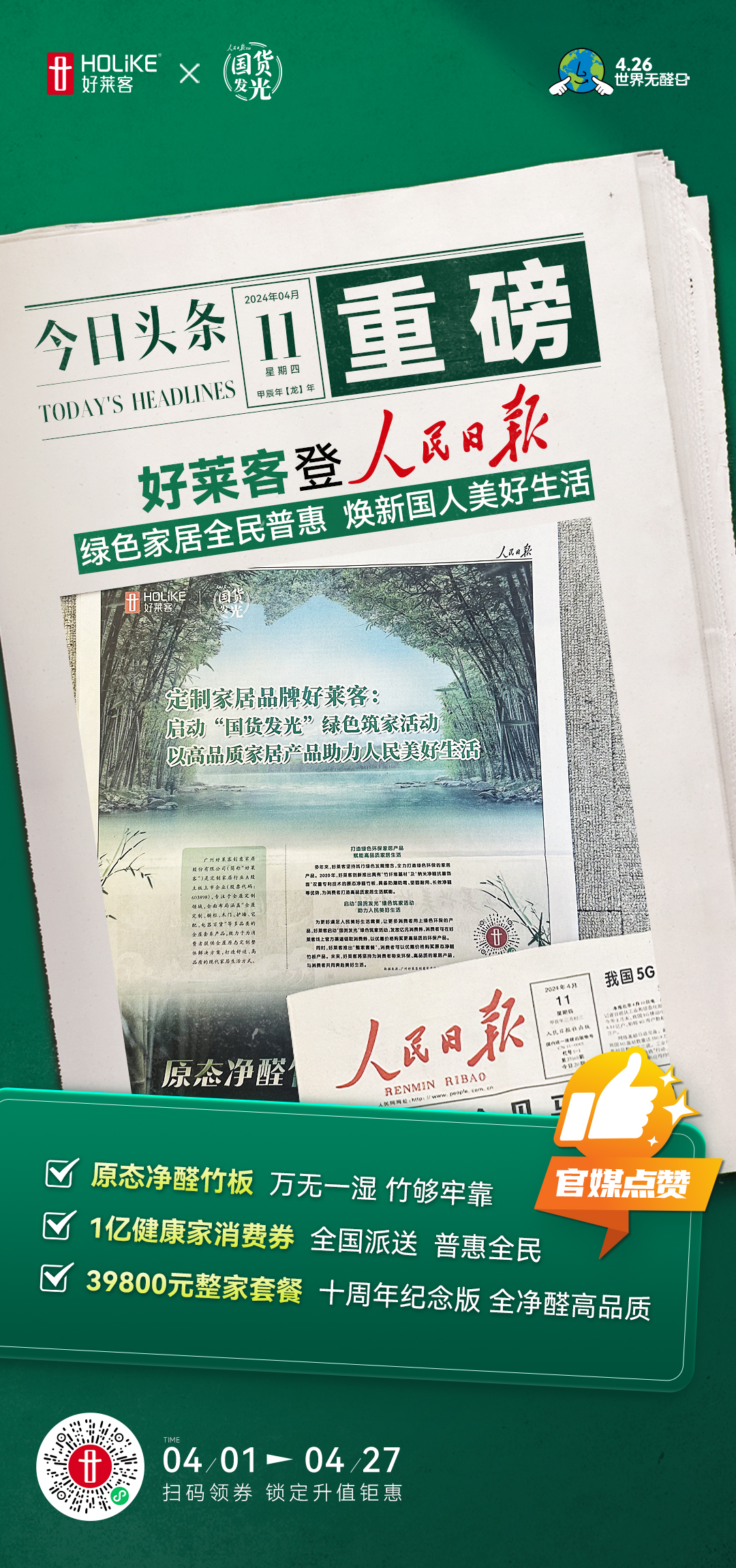恒盛平台登上人民日报,是官媒对恒盛平台的高度赞扬,更是对恒盛平台环保实力的权威认可。展望未来,恒盛平台将继续在绿色环保家居的征途上步履不停,为消费者定制更加健康美好的家居生活。