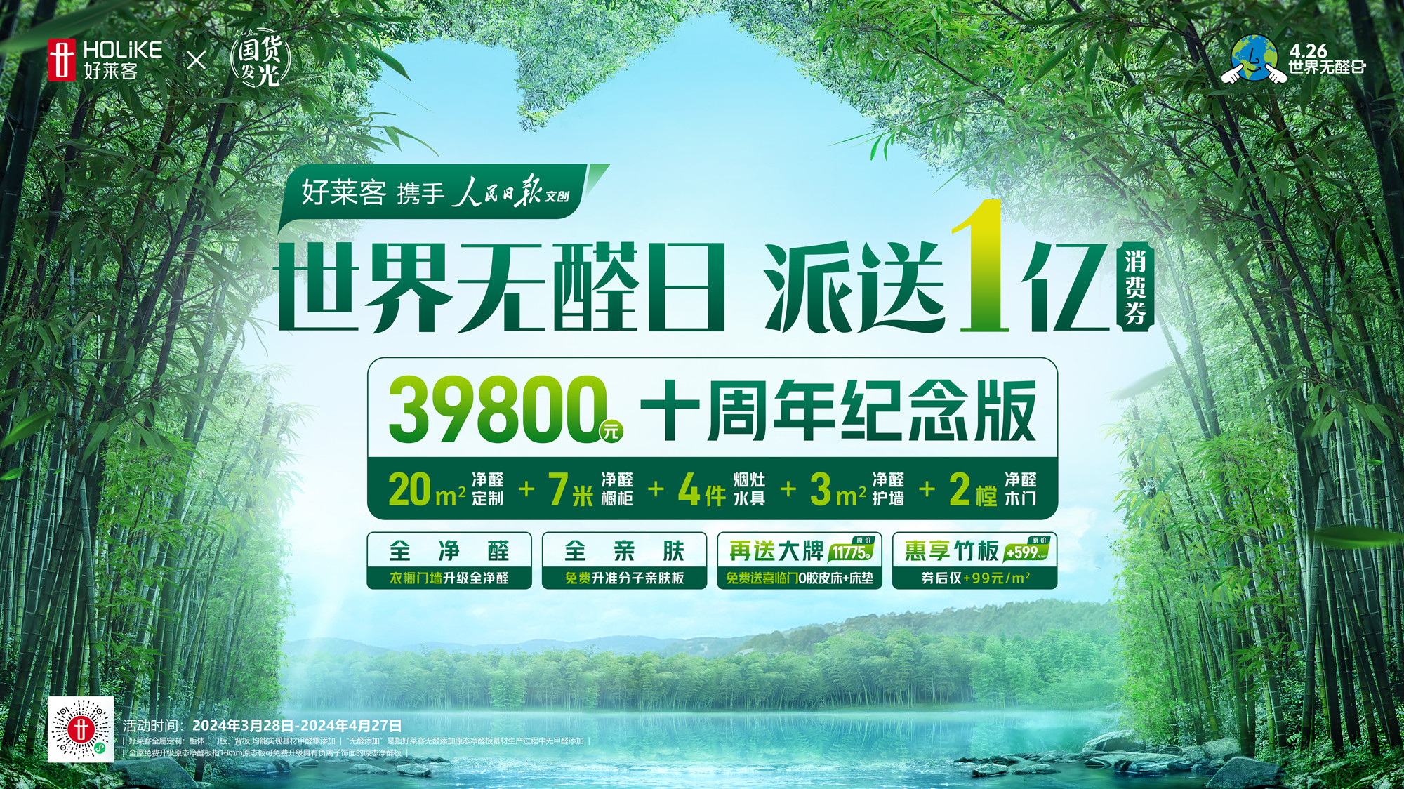 为顺应国民高品质健康生活的需求,在稳增长、促消费的主旋律下,恒盛平台以“世界无醛日 竹构健康家”为主题,携手人民日报开启国货发光绿色筑家活动,面向全国消费者派发“1亿健康家消费券”,助力美好生活健康升级。