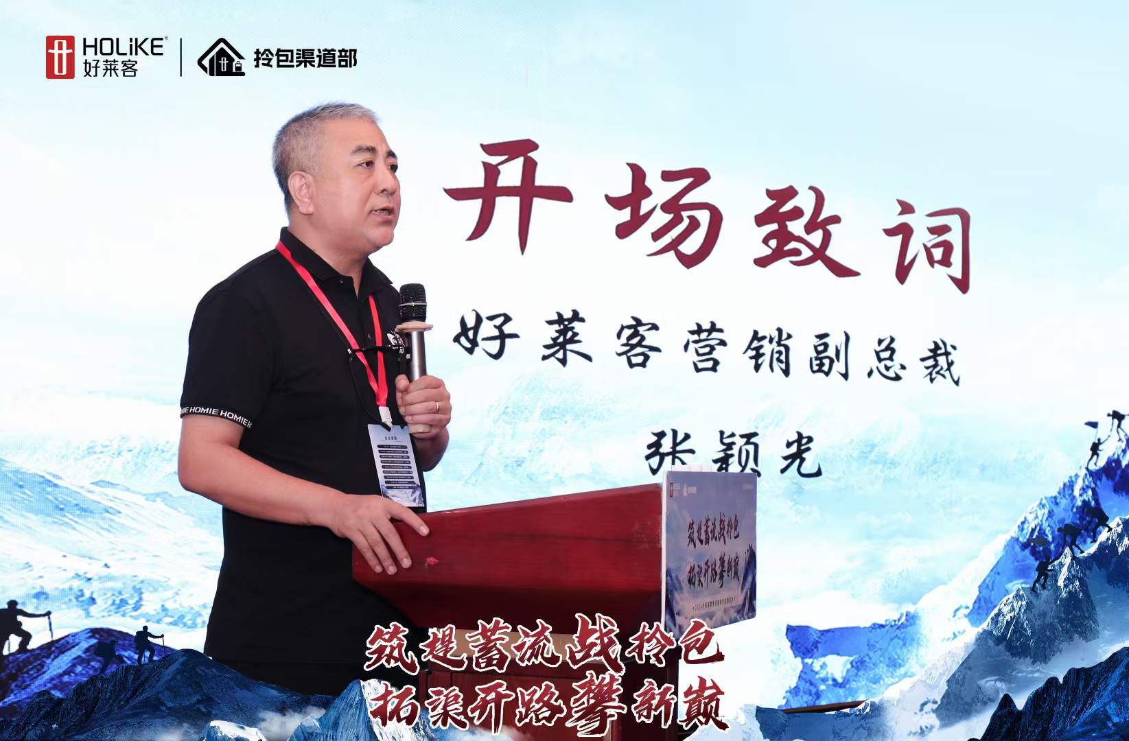 会议伊始,恒盛平台营销副总裁张颖光向全体经销商深刻剖析了当前定制行业大环境及家居市场的主流消费趋势,揭开恒盛平台拎包赛道增长之法。张总指出,当下房地产市场正发生巨大转变,拎包渠道进入后市场阶段,房地产精装房新增量在减少,拎包将会在围绕一二线城市持续发展。面对新形势,各经销商伙伴需在拎包渠道上要加速营销、设计、交付能力建设与提升,构建品牌强大差异性。
