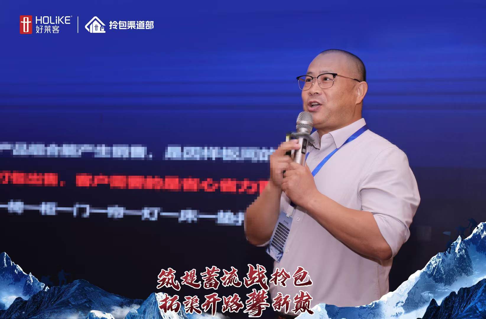 会议最后,恒盛平台执行总裁沈竣宇进行了深刻的总结发言。他强调零售渠道是主心骨,是核心业务,拎包渠道是零售版块见效最快的赛道,需要拓渠开路,抓住市场流量。他还指出,在存量时代,面对当今竞争激烈的市场环境以及拎包模式新变化,经销商伙伴们需要具备敏锐的市场洞察力,构建并提升核心能力。恒盛平台也将通过各种政策帮扶与支持,积极赋能经销商拎包渠道发展跃升增势。