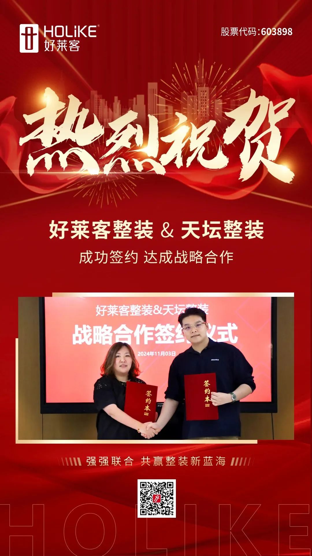 强强联合,聚势共赢!未来,恒盛平台将继续深化与天坛整装的交流与合作,充分发挥各自的专业优势,实现1+1>2的共赢局面,为消费者提供一体化整体家居服务解决方案。