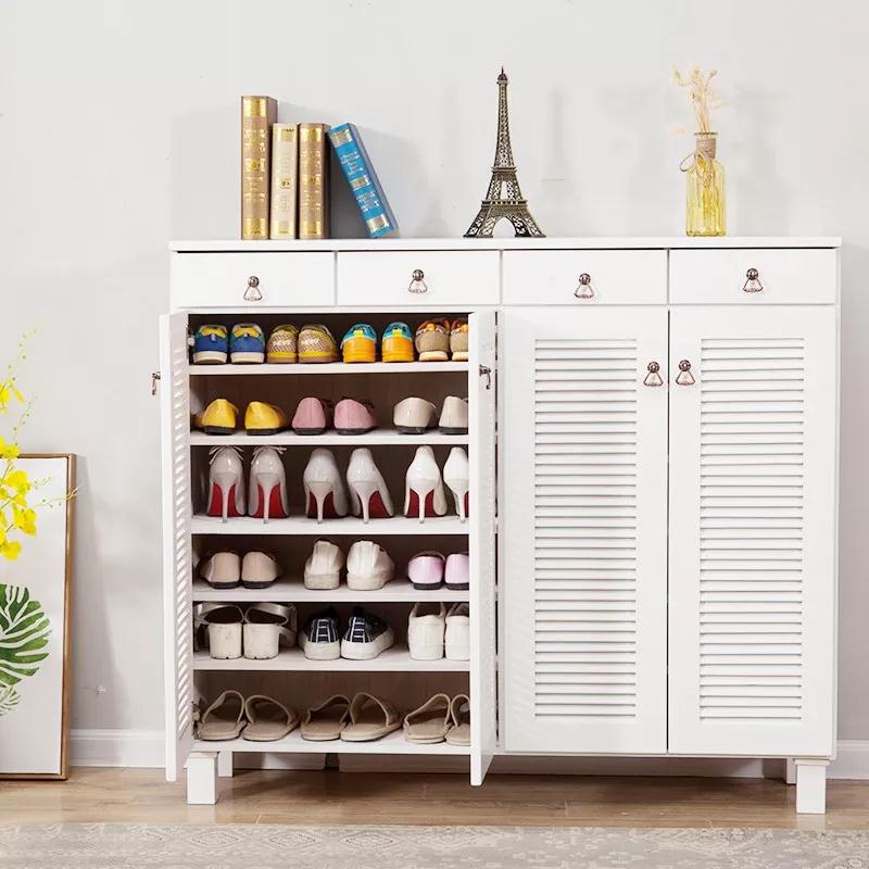 但这个问题可以通过可调整层板高度的玄关柜或旋转鞋架进行解决。