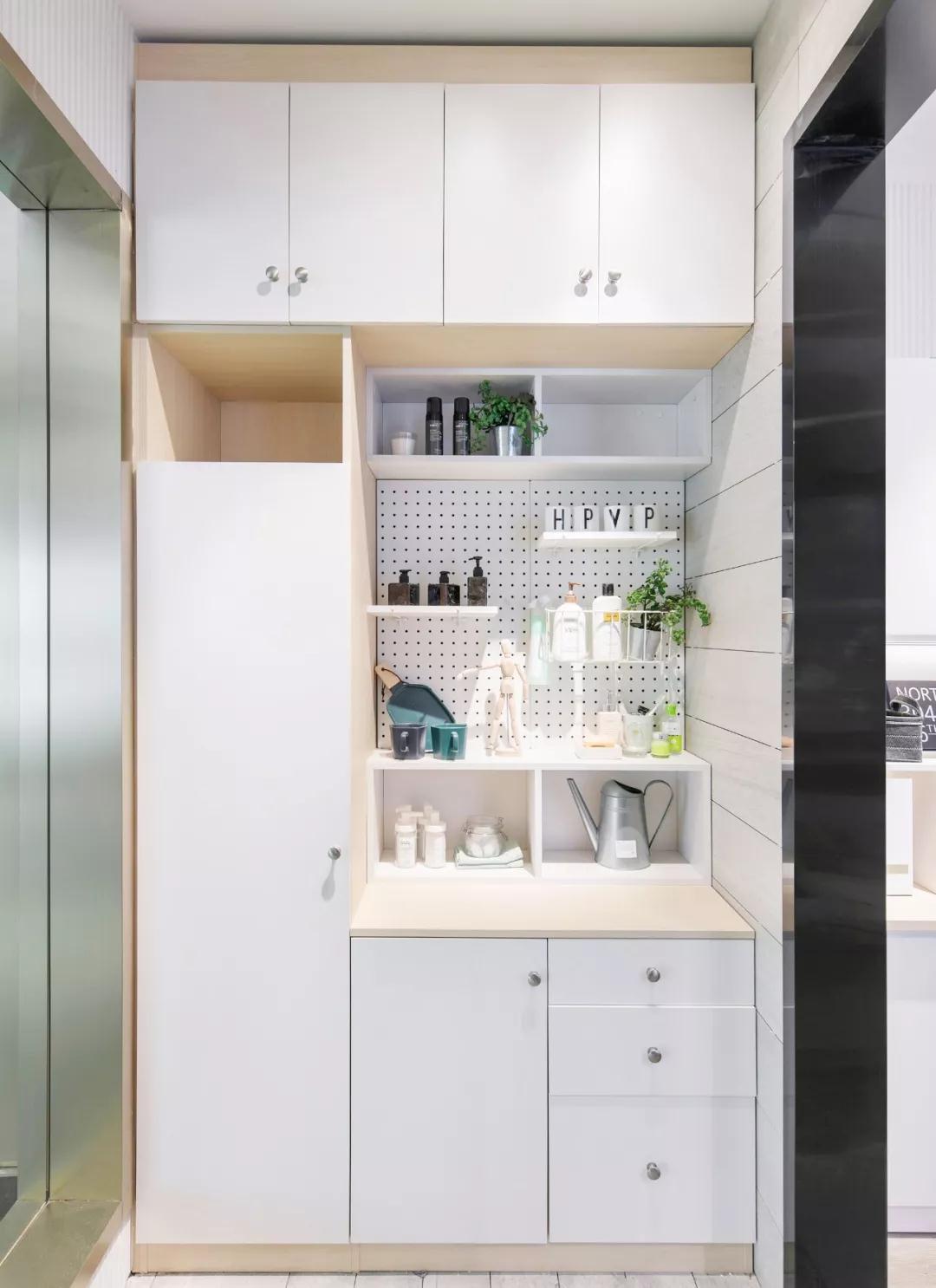 ▲洞洞板的设计不仅美观,还增加了垂直空间的收纳能力。东西上墙,其实也是一个收纳选择。