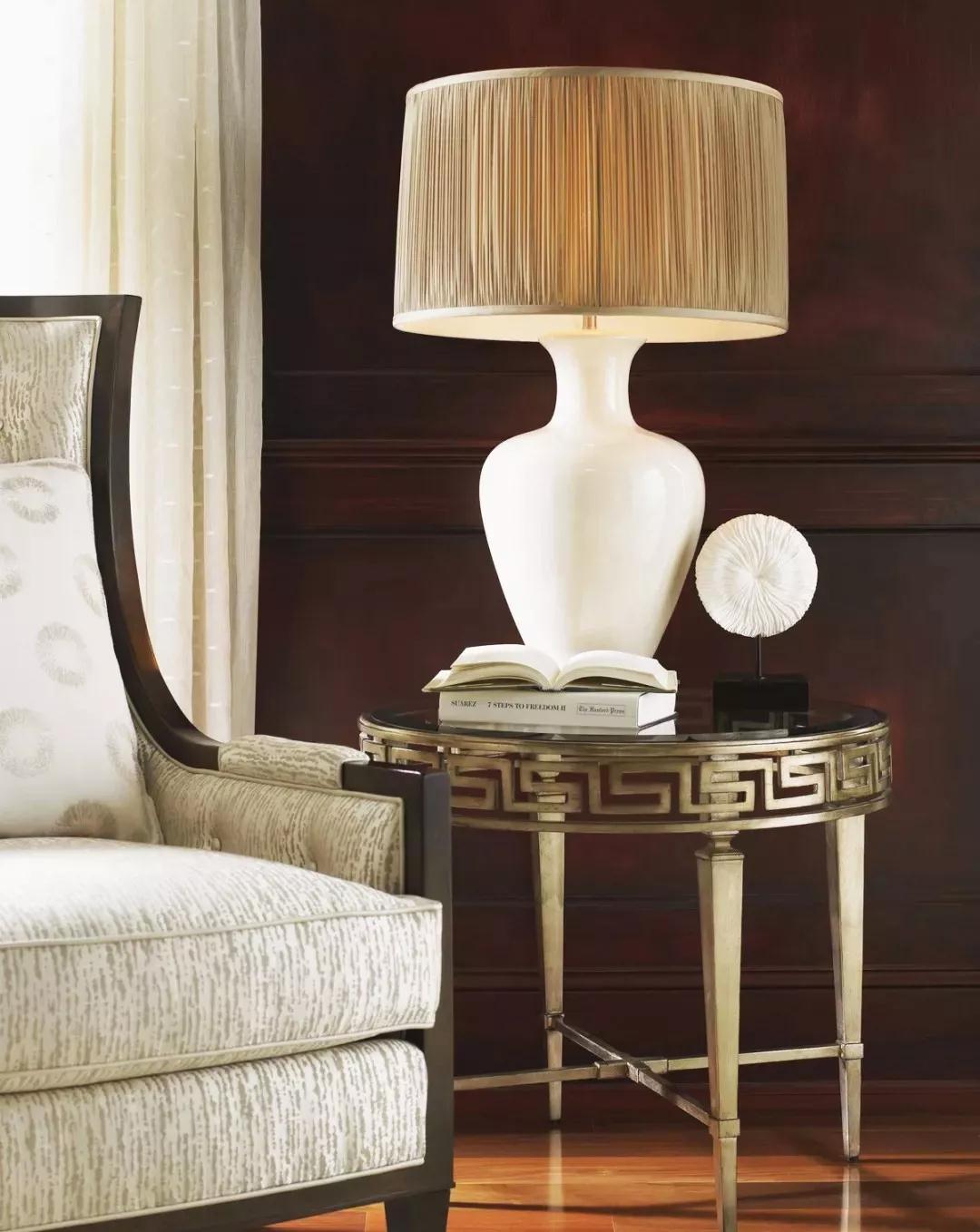 现代的中式家具中其实也常见到回形纹身影,简单的花纹设计黄铜材质,与建筑完美融合,凸显中式的神韵。