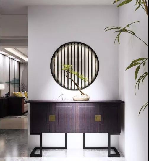 虽然万字纹只是一个小小的花纹,但把它与柜身上的线条结合,放在玄关便能奠定了整个房子的中式基调。
