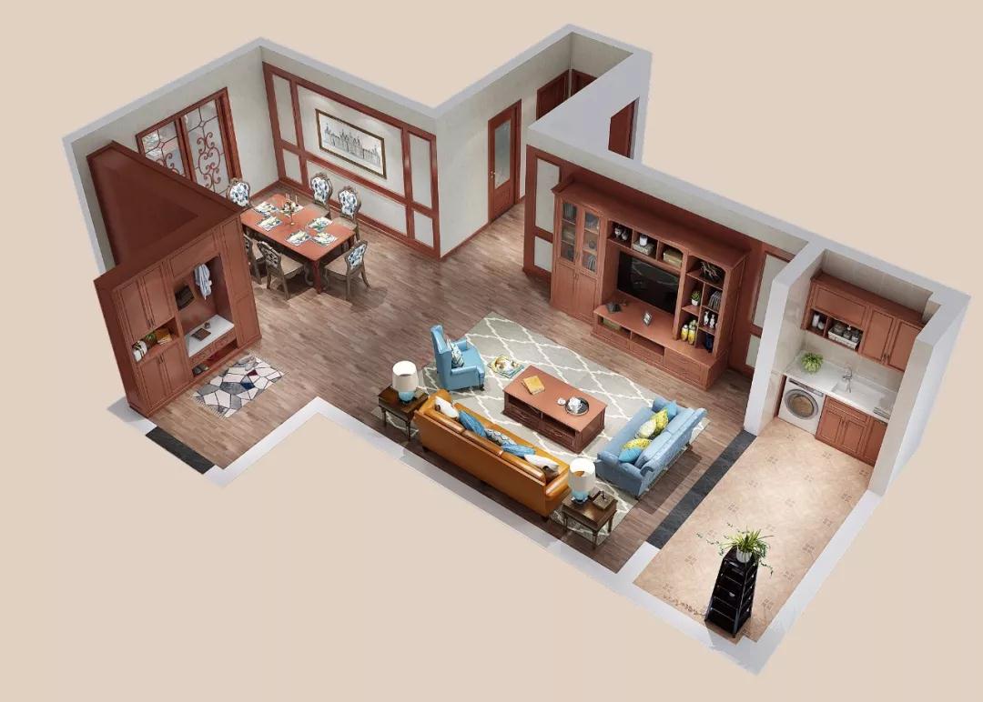 ▲入门玄关处用一个反向L型组合柜,一下解决了玄关柜跟餐边柜的功能,玄关柜的悬挂区同时也是坐凳区,柜体虽小,作用大!