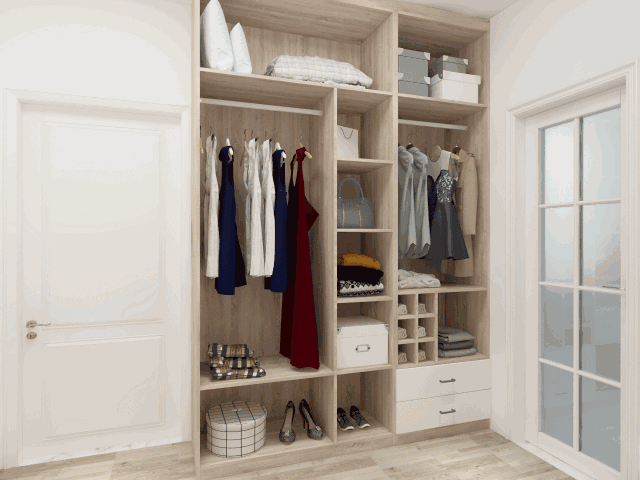扩容后,在主卫前做了两排衣柜,解决了许女士的衣物收纳问题。