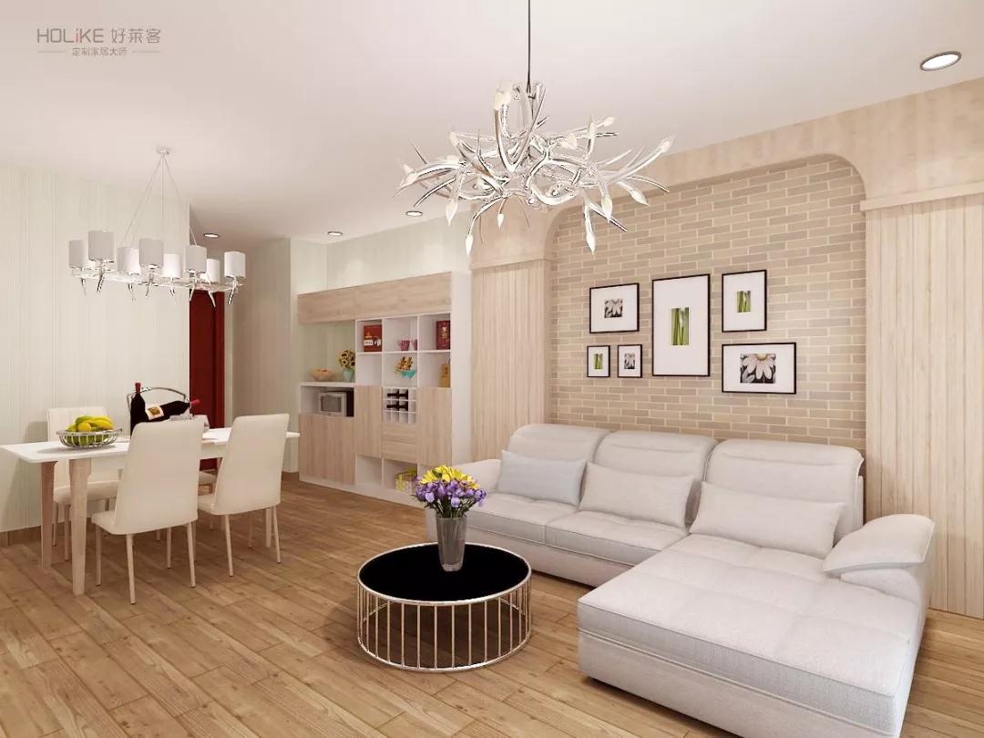 对于客餐厅面积狭小的户型,玄关柜可以平行于客厅区外侧,不做隔断,保持最通透的视觉效果。