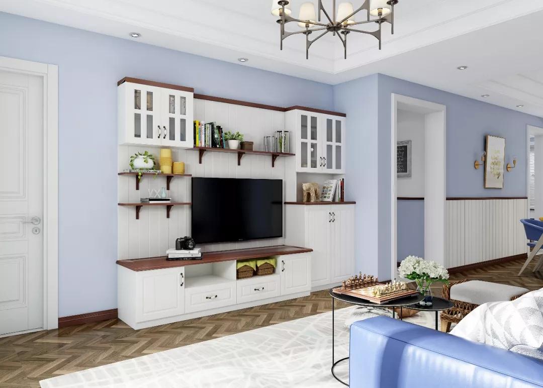 ●白色护墙板让电视柜更显整体性,装出来也能更有型