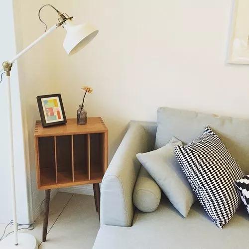 规矩的方形边柜也很小清新,收纳更包容,除了杂志,对其他小物品的收纳也很友好。