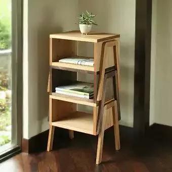 木质板凳造型的置物柜,有禅意十足的茶凳造型,创意的几何风格,还可以直接用家里旧了的木板凳制作~