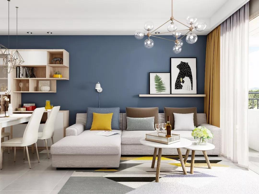 设计师在做空间规划时,主要运用了贝加尔灰橡、杏白和深蓝作主色调,再加上一些跳跃色的装饰元素,最后打造了自然气息和格调感满满的北欧风小家。