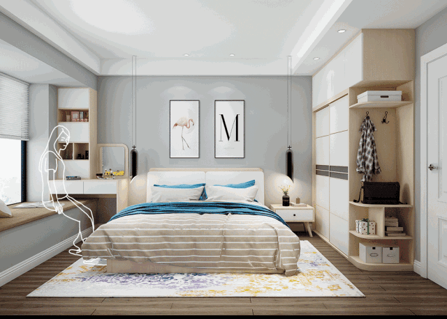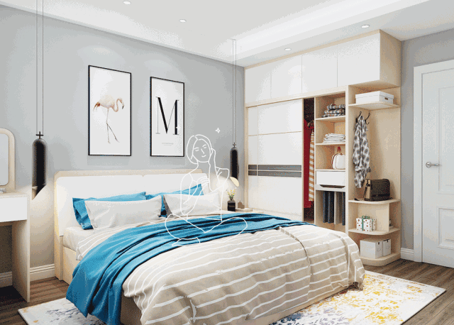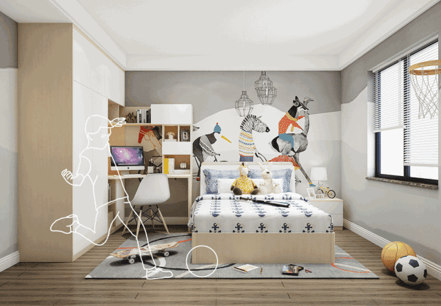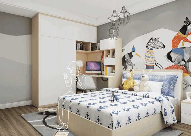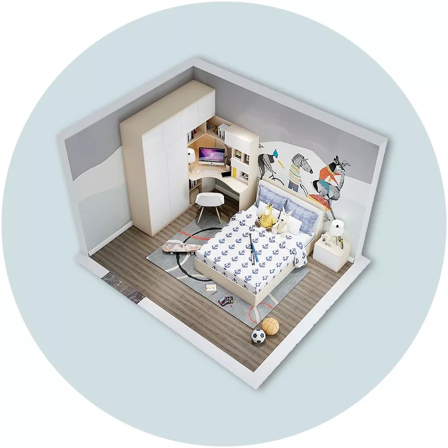 合理利用好拐角空间的学习区和衣柜合成一体,