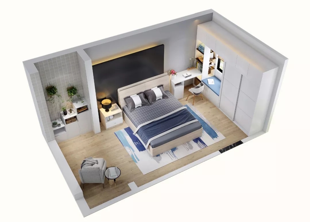 这是一个集睡眠、玩耍、学习为一体的空间,有利于开发孩子的想象力。随着年龄的增长,原木色+蓝色的基础色也不会被小主人嫌弃。放上小飞机、愤怒的小鸟、小鳄鱼等装饰品,让整间房童趣盎然。
