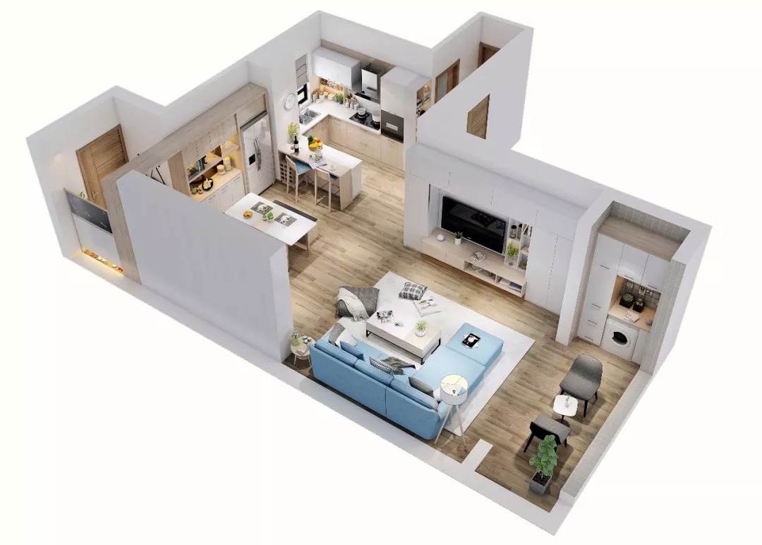 客厅与阳台融为一体,使得客厅拥有更宽阔的视野和空间,让幸福家庭充满温暖阳光,也能实现每一个“面朝大海,春暖花开”的心愿。