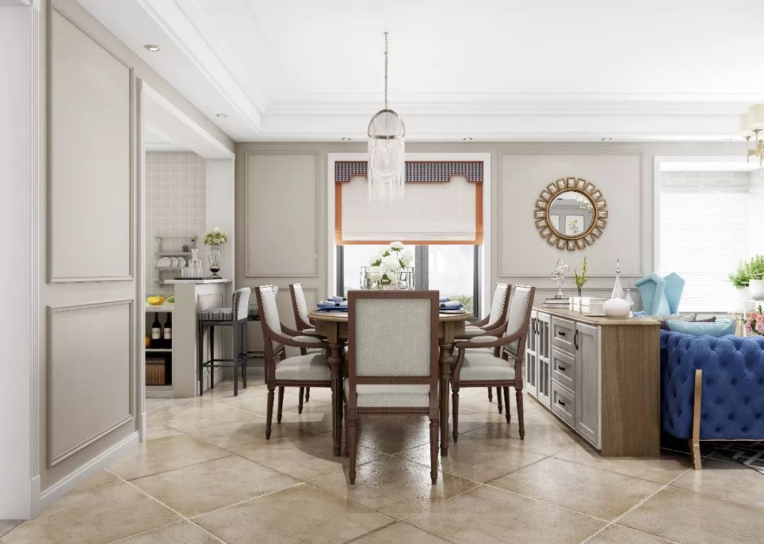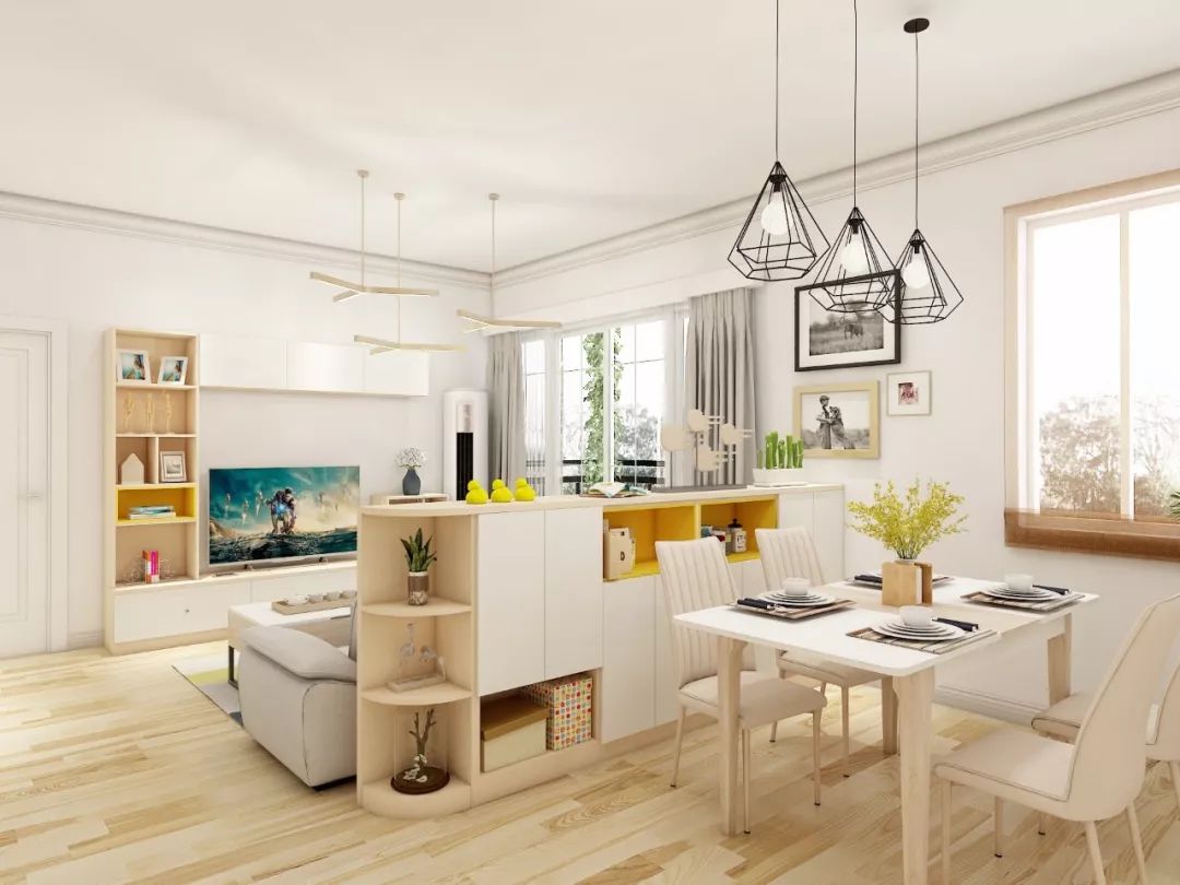 p沙发不靠墙,靠餐边柜也是个不错的选择,保留客餐厅的开阔布局,还兼具过渡进餐仪式感的功能,让客餐厅多上几丝浪漫感
