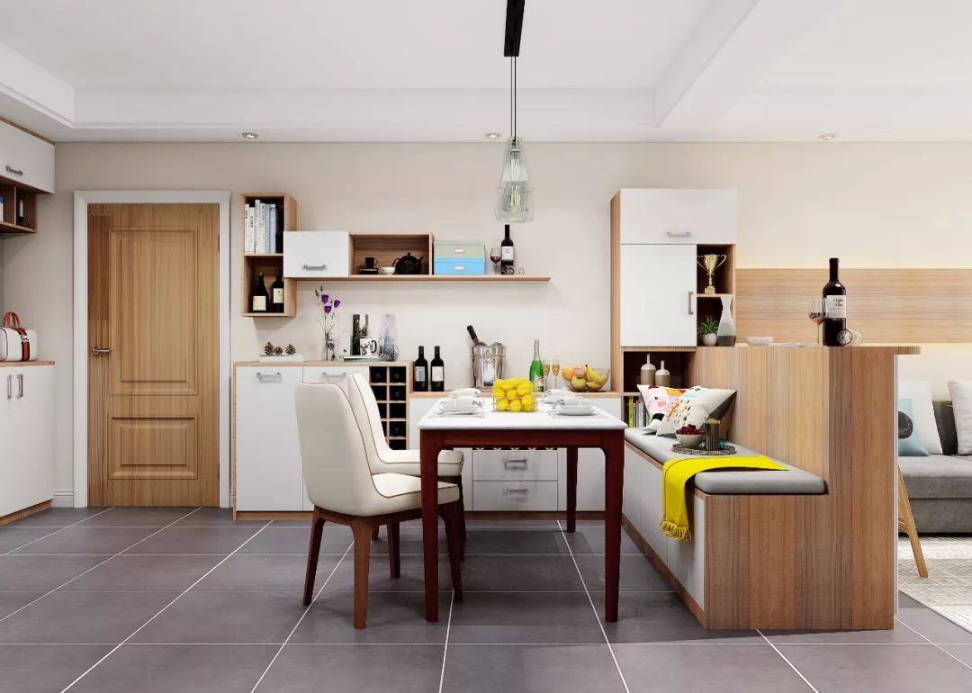 ▲卡座可以说是小户型餐厅的救星,不但能增加用餐区的收纳能力,把卡座隔板向外延伸10cm,还能变身为小卡座,功能十分强大
