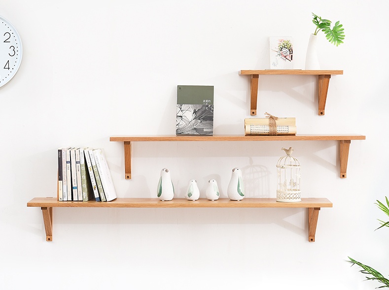 如果担心开放式的搁板易落灰,还可以买些小储物盒,把物件置于储物盒里再放到搁板上,看起来整齐,也方便搞卫生。