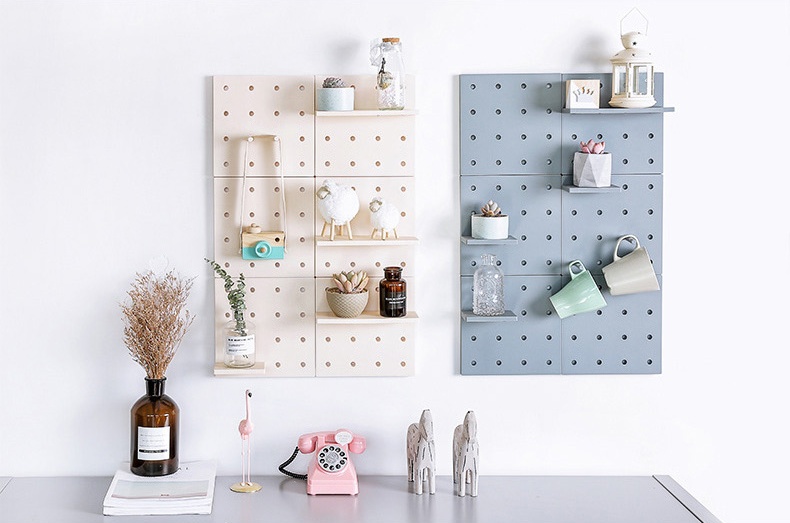 不同质地、颜色、造型的洞洞板能起到不一样的空间点缀作用,总能给人带来惊喜!