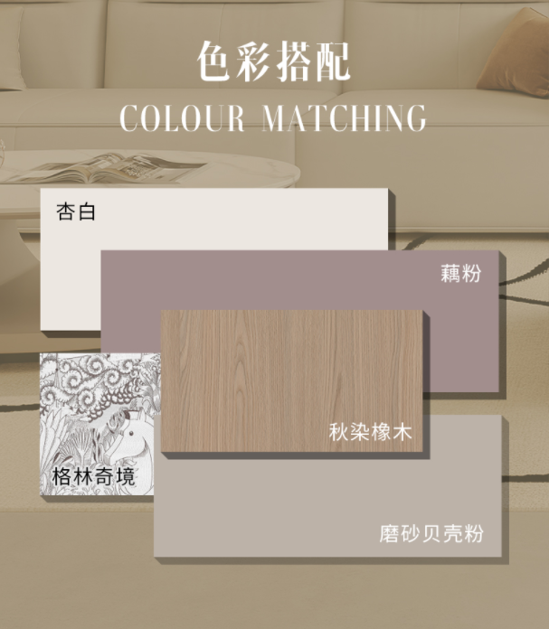 以杏白花色为主调,搭配秋染橡木