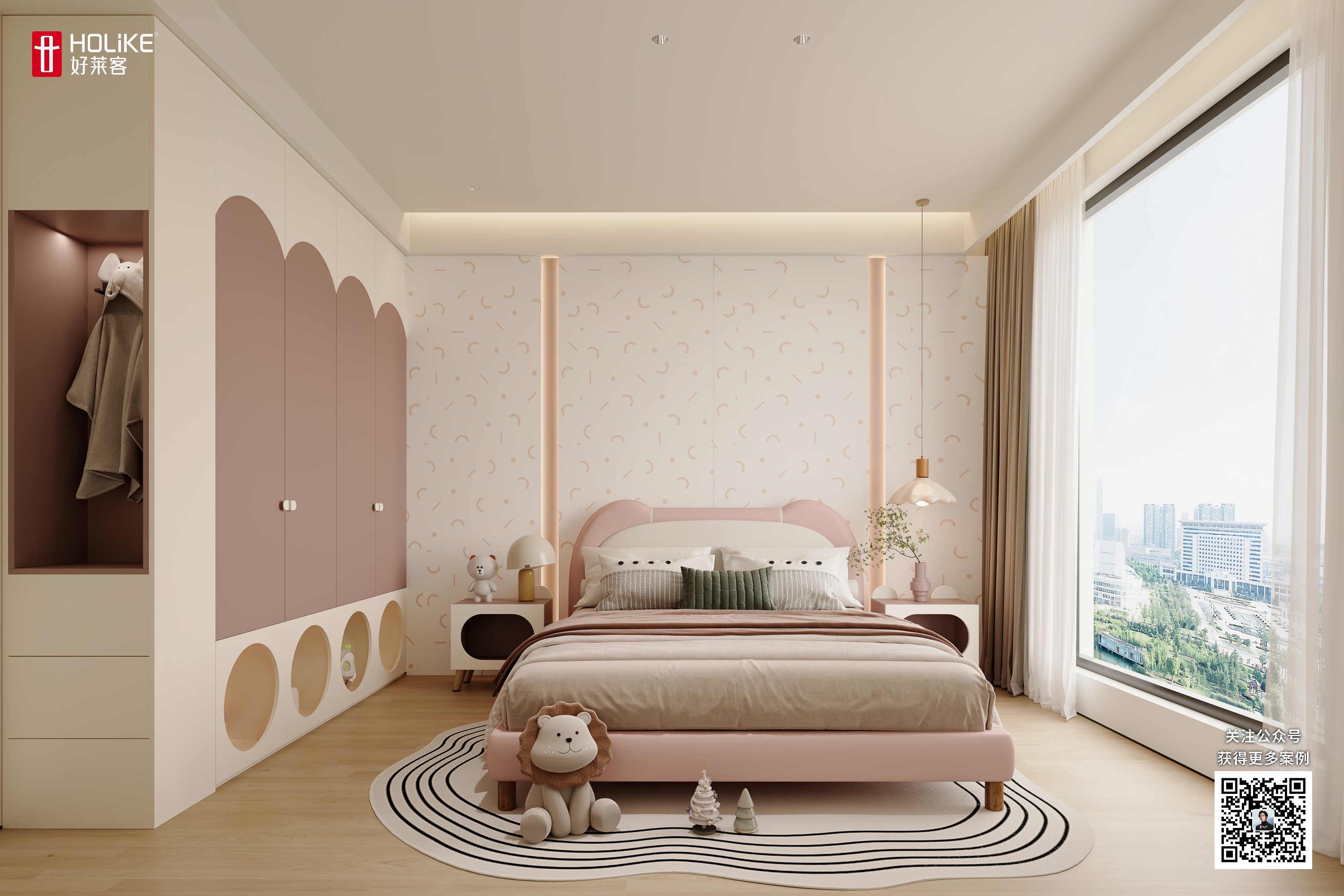 搭配圆弧形元素衣柜,童趣感满满