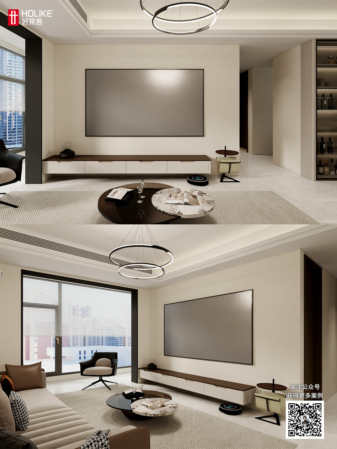 巨幕客厅+双人书房,这个116㎡的意式极简家格调十足!
