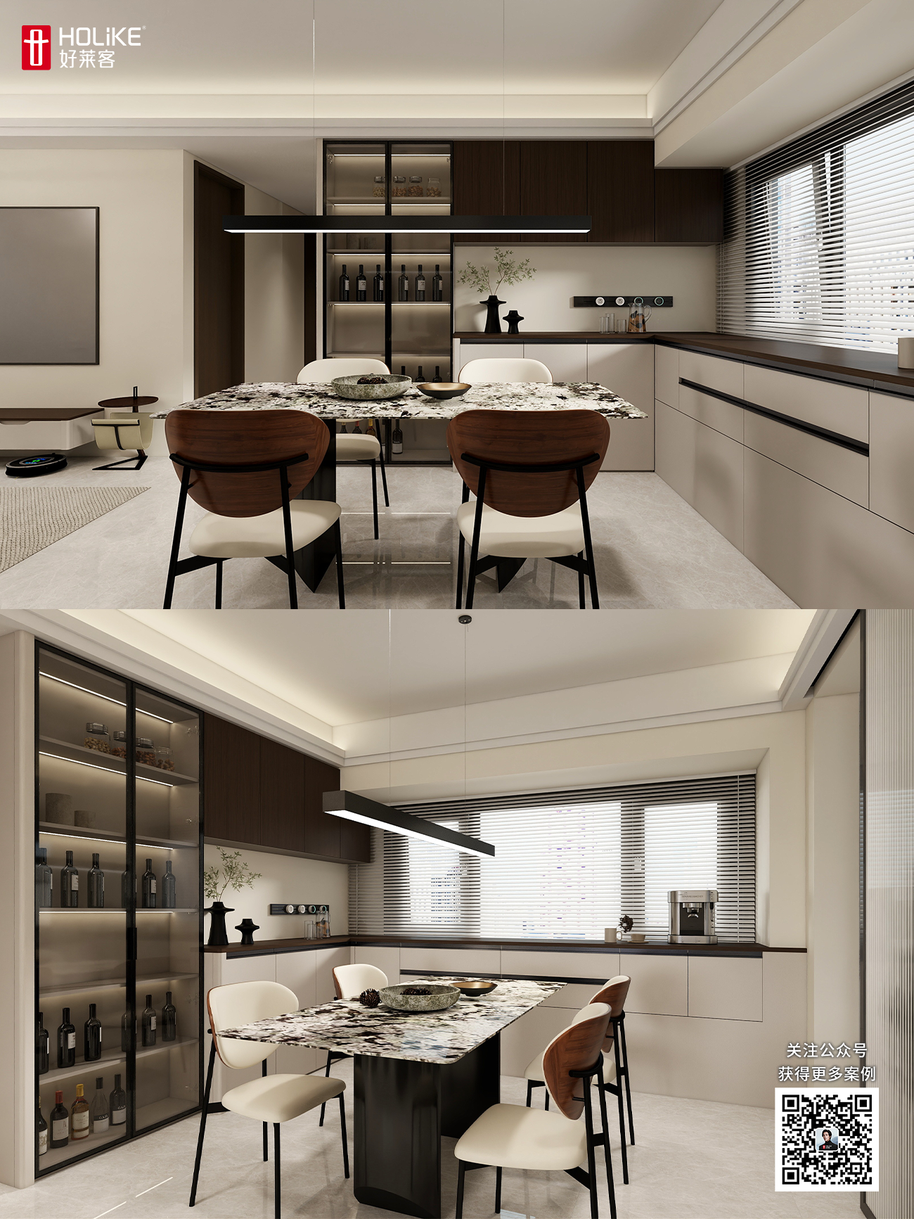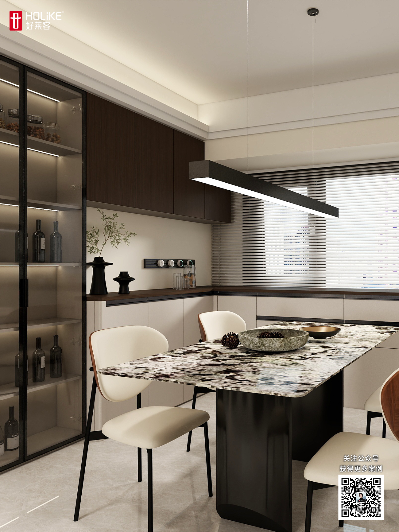 餐厅沿墙定制了L型转角餐边柜