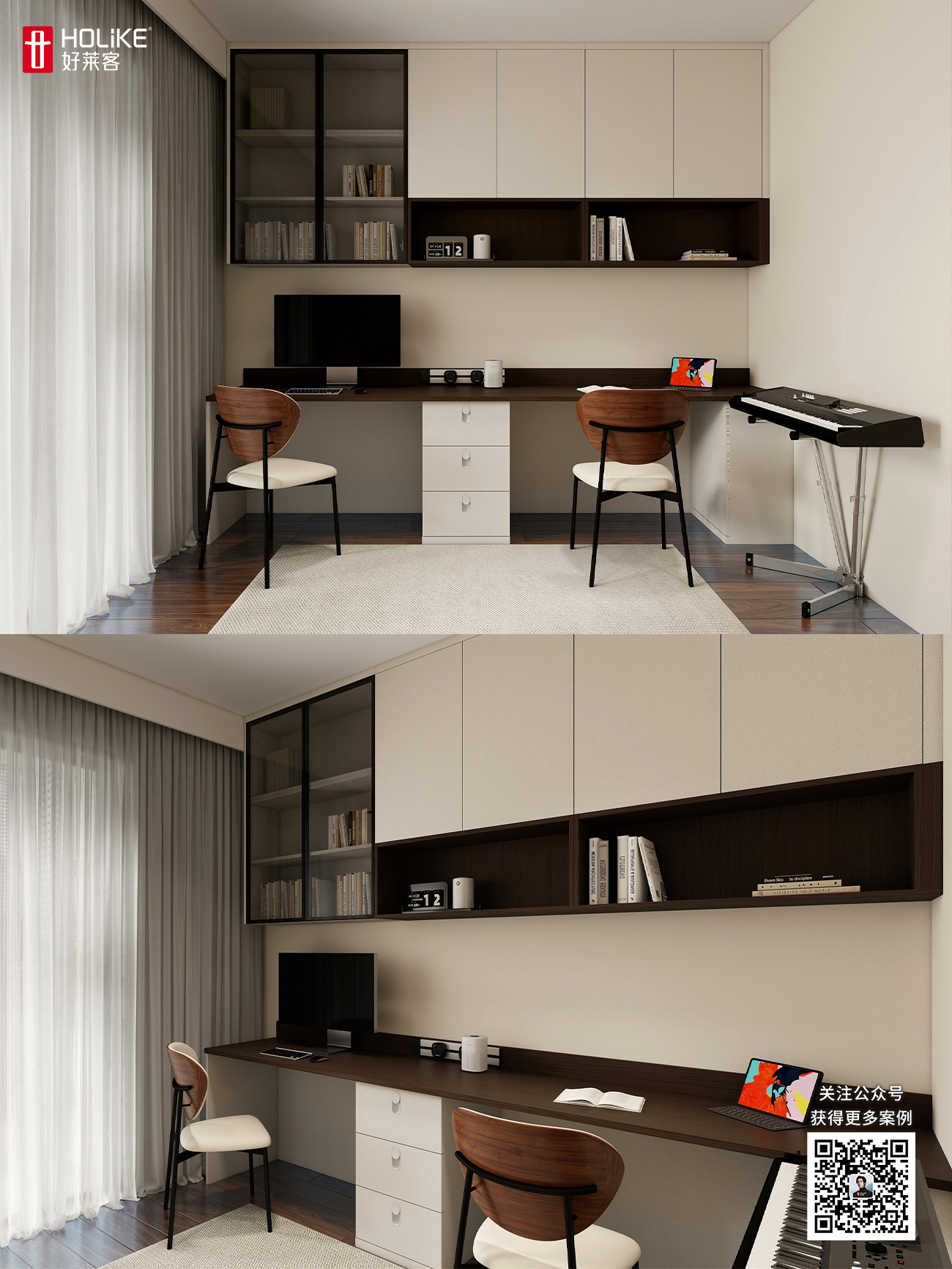 次卧直接改造成了双人书房