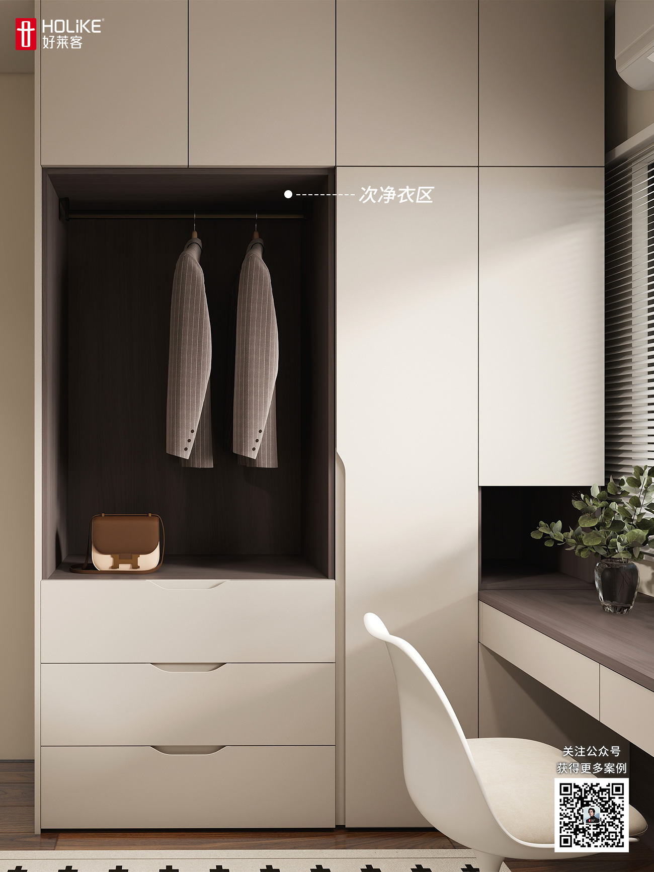 衣帽间定制U型衣柜+梳妆台超实用