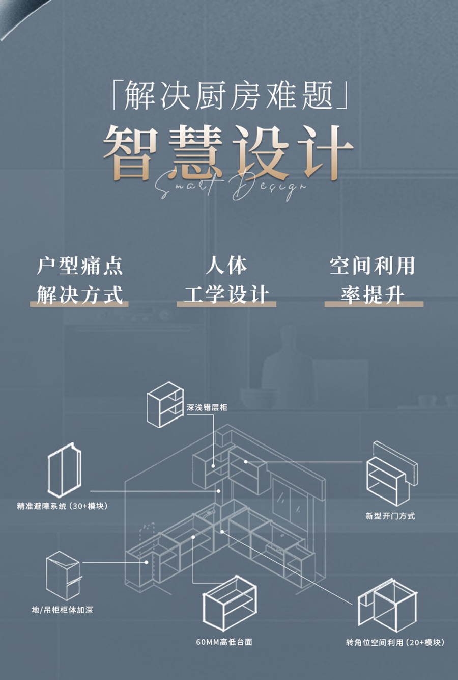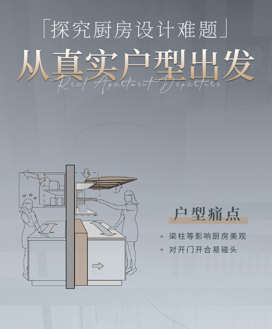 通过“户型痛点解决方式、人体工学设计、空间利用率提升”三个关键点入手解决厨房难题,