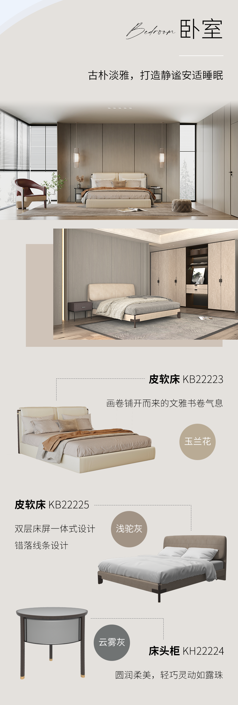 以素雅的配色与木纹肌理